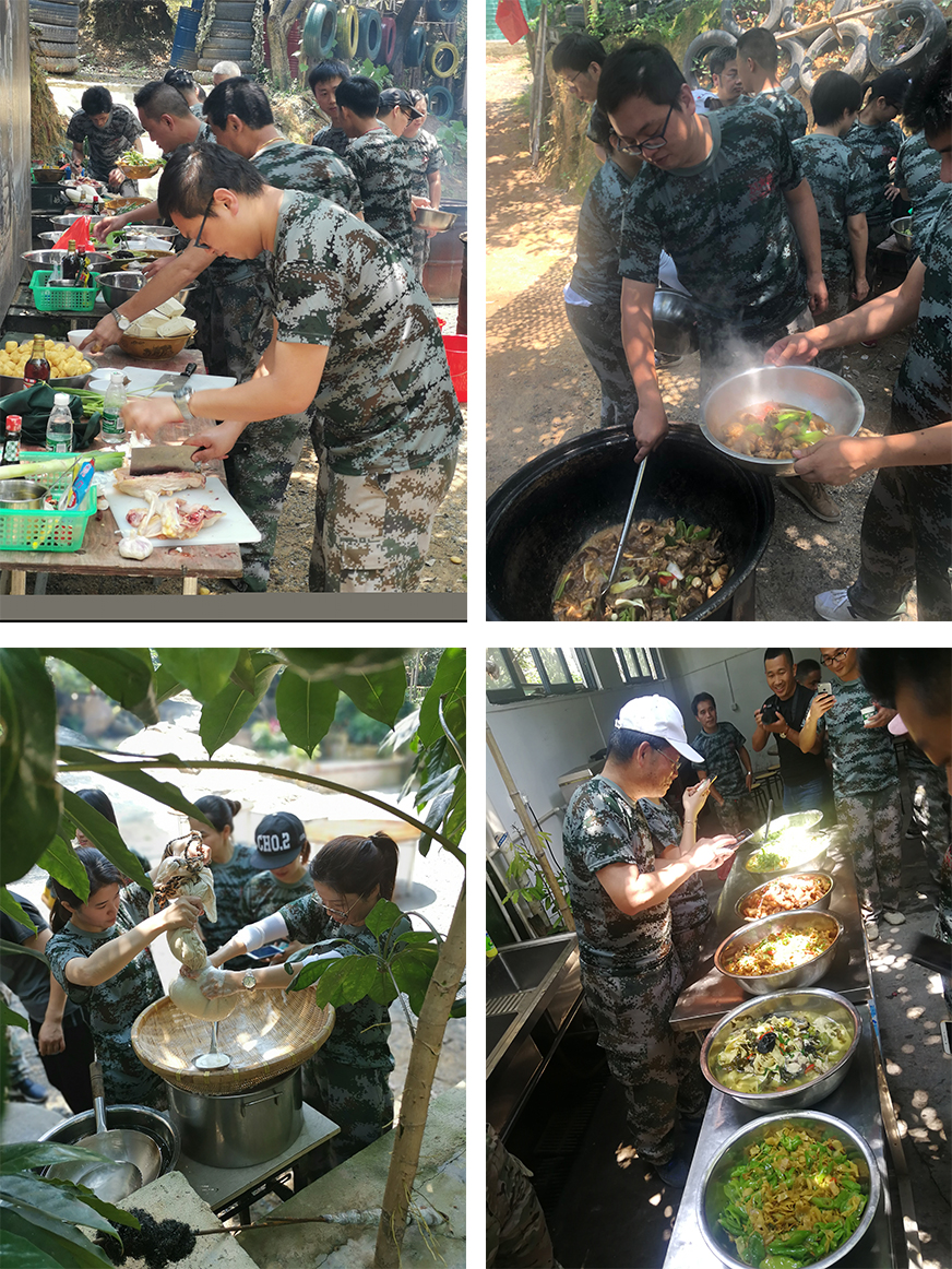 伴隨著朝陽的沐浴,教練迅速把60名人員分成四個(gè)小隊(duì),換服裝,分組編隊(duì),每組選出隊(duì)長——舉隊(duì)旗、起隊(duì)名、定隊(duì)號(hào)、畫LOGO等等,接著開始破冰環(huán)節(jié),讓大家打破隔閡,達(dá)成共識(shí),快速進(jìn)入拓展的狀態(tài)。此次拓展訓(xùn)練共安排了4項(xiàng)拓展項(xiàng)目,大家熱情高漲。鼓動(dòng)人生、接力傳球、特戰(zhàn)野炊、叢林槍戰(zhàn)都讓學(xué)員們印象深刻。鼓動(dòng)人生該項(xiàng)目強(qiáng)調(diào)整體協(xié)作與配合,要求整個(gè)團(tuán)隊(duì)每個(gè)人都要拉緊自己手中的繩子配合節(jié)奏并保持平衡,整個(gè)團(tuán)隊(duì)的每一個(gè)人都不能出現(xiàn)失誤,必須精誠合作,個(gè)人英雄主義思想、好勝、莽撞都會(huì)讓整個(gè)團(tuán)隊(duì)功虧一簣。接力傳球強(qiáng)調(diào)的是對大家默契程度的考驗(yàn),充分體現(xiàn)了團(tuán)隊(duì)的協(xié)作力。特戰(zhàn)野炊項(xiàng)目考驗(yàn)團(tuán)隊(duì)的凝聚力和時(shí)間的觀念性,生火、洗菜、切菜、洗碗、煮飯,隊(duì)員里的每個(gè)人都要清楚自身分工,干好自己手中的活,確保在規(guī)定時(shí)間內(nèi)完成該項(xiàng)目。叢林槍戰(zhàn)強(qiáng)調(diào)充分挖掘自身潛能,因地制宜,提前做好部署。“這些對參加工作的我們都是很好的學(xué)習(xí)和借鑒。”