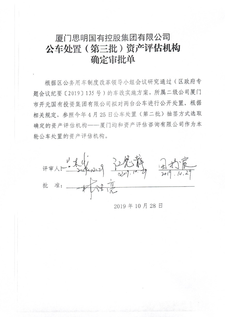 附件:1.《公車處置(第三批)資產(chǎn)評估機構(gòu)確定審批單》