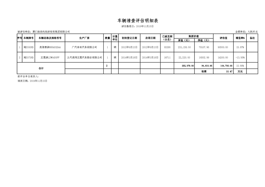 4.《鼓浪嶼旅游集團車輛清查評估明細表》。