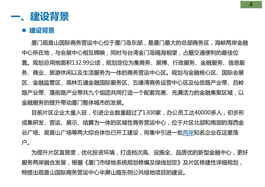 具體內(nèi)容詳見附件:《觀音山國際商務(wù)營運(yùn)中心半屏山路東側(cè)公共綠地設(shè)計(jì)方案》