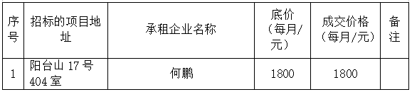 陽臺山17號404室房產招租成交公告