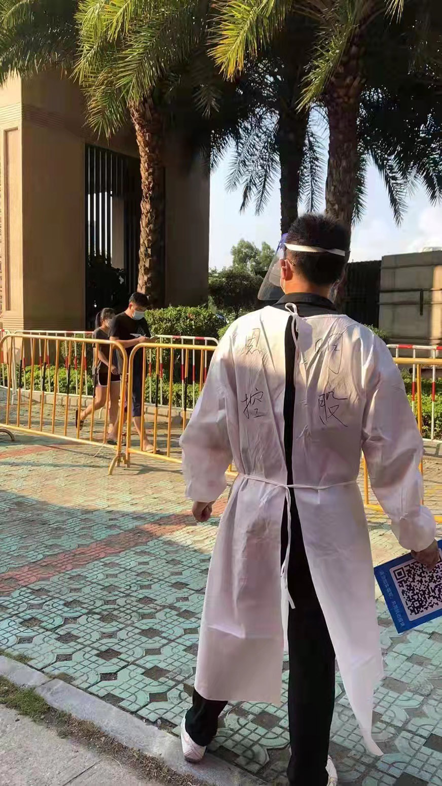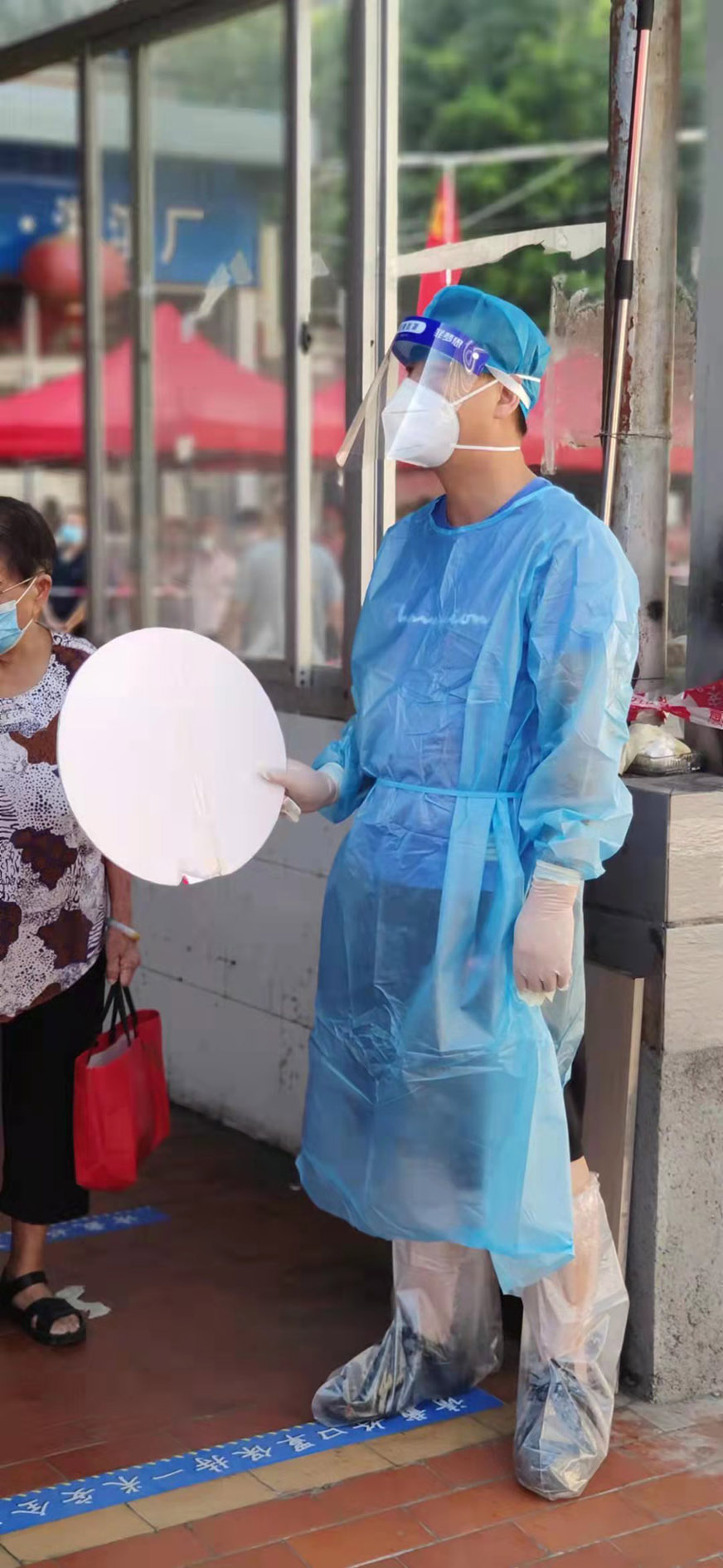 9月的廈門依然驕陽似火,志愿者們戴著口罩、面罩、手套,穿著厚重的防護服,夏日的陽光如同有火的萬箭照射在他們身上,他們恍然不覺,手上揮舞著牌子,嘴上念叨著:“請大家保持距離,請間隔一米”,“請出示健康碼”,“請?zhí)崆皽蕚浜玫怯洿a或者身份證……”。有的市民等候得心煩氣躁了,他們極力安撫;有的市民不知如何進行預登記,他們耐心指導......, 志愿者們這樣一站就是六七個小時,防護服下的衣服就像在水里撈過似的,有的同事中暑了,有的同事頭痛耳鳴了,有的同事渾身酸痛、疲憊不堪,但他們都不肯休息,依然堅持不懈,站好自己的一班崗。大家只有一個共同目標——讓廈門重歸美好。