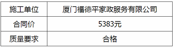 根據(jù)招投標(biāo)管理辦法、思明控股辦[2021]14號(hào)文《采購(gòu)招標(biāo)管理辦法》的相關(guān)規(guī)定,我司負(fù)責(zé)龍山文創(chuàng)園工業(yè)設(shè)計(jì)中心北側(cè)外墻、觀光電梯外立面清洗工程直接發(fā)包廈門(mén)福德平家政服務(wù)有限公司實(shí)施,現(xiàn)通過(guò)思明控股網(wǎng)站于2021年12月27日至2021年12月30日進(jìn)行成交結(jié)果公示,內(nèi)容如下: