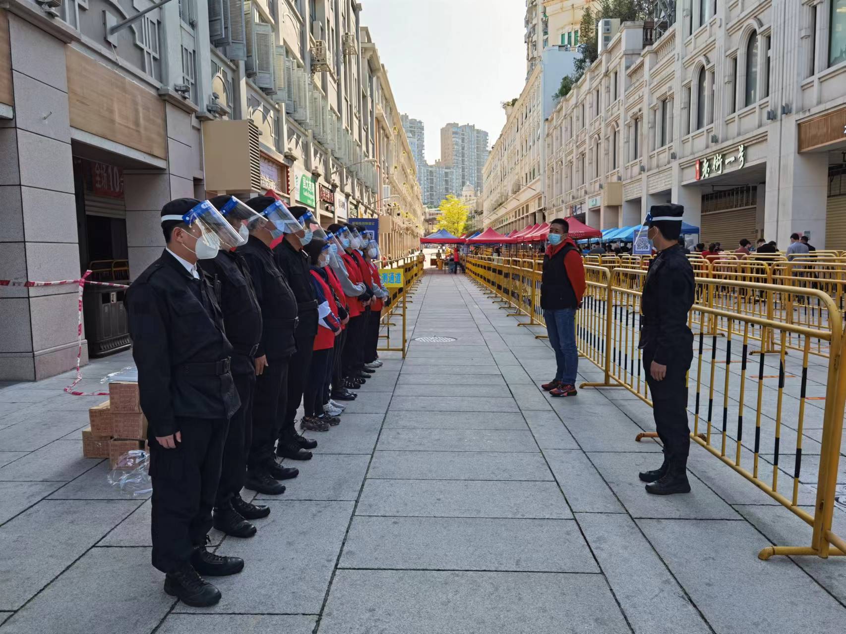 “收到”二字是響應(yīng)疫情防控任務(wù)最有力的回答!前半個多月,為配合控制新冠疫情反彈和蔓延,按照市區(qū)兩級疫情防控要求,在中華街道所屬范圍開展數(shù)輪全員核酸檢測。4月4日,正值清明放假午間12點,“中山路東段設(shè)置12條核酸檢測點,觀音山物業(yè)配合做好現(xiàn)場保障工作”中華街道防疫部署會命令一下達,中山路服務(wù)中心團隊工作群立即響應(yīng),一聲聲“收到”及時利落地接龍回復(fù)。很快,中山路服務(wù)中心防疫核酸檢測維序分隊集結(jié)整裝待發(fā)。