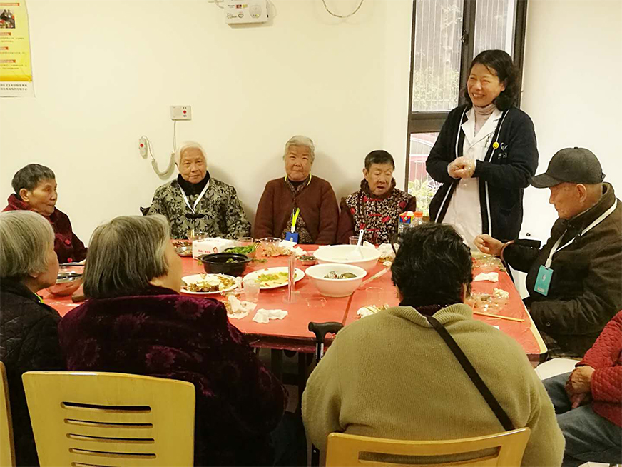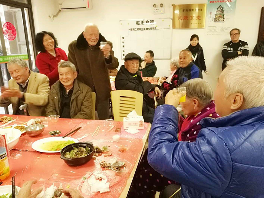 開飯時(shí)間到了,老人們都換上漂亮的新衣服,他們的臉上都洋溢著孩子般的笑容,行動(dòng)方便的老人在護(hù)工的攙扶下來到了餐廳,大部分行動(dòng)不便的老人安排在各個(gè)樓層用餐,由護(hù)士幫忙夾菜喂飯。公司所有員工全部到場(chǎng)為老人服務(wù),不論是在餐廳還是在樓層,到處都能看到員工忙碌的身影。為了讓老人更開心,公司還邀請(qǐng)部分家屬一起來陪伴老人吃年夜飯,讓親情在陪伴中得到交流,還有幾個(gè)可愛的小志愿者也前來服務(wù),更有趣的是,還有家屬把家里的寵物狗也帶過來了,為狗年增添幾分樂趣,為老人們添旺加福!整個(gè)場(chǎng)面喜慶洋洋,老人們特別得高興,臉上無一不掛滿了笑容。