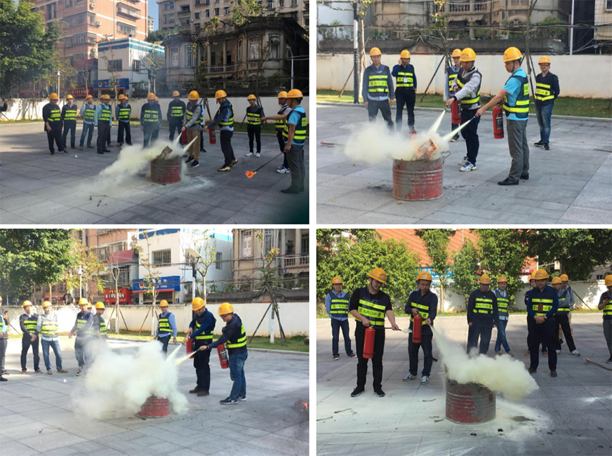 演練開始,首先是對干粉滅火器的操作使用,隊員們采取兩兩分組,搖瓶,除封,拔銷,滅火,沉著冷靜,有條不紊,基本做到一次性完成滅火任務(wù),這對于平時很少實戰(zhàn)經(jīng)驗的員工來說實屬難得。
