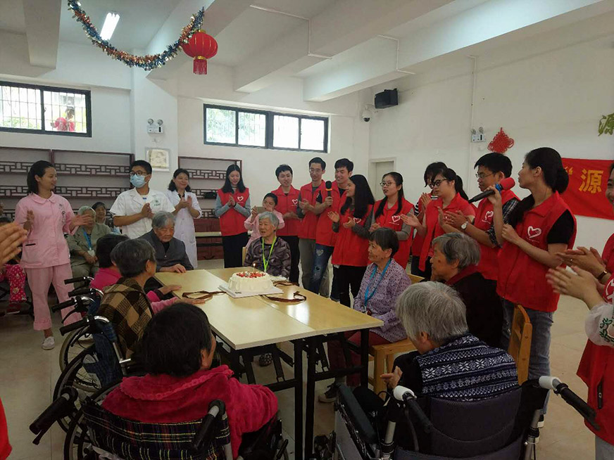 2018年4月22日,源泉山莊老年公寓不時傳出歡聲笑語,一派歡樂祥和的景象。原來是源泉山莊老年公寓與廈門市農(nóng)行共同為公寓18位4月份生日的老人舉辦了簡樸而又熱鬧的“集體生日”慶?;顒印?/span>