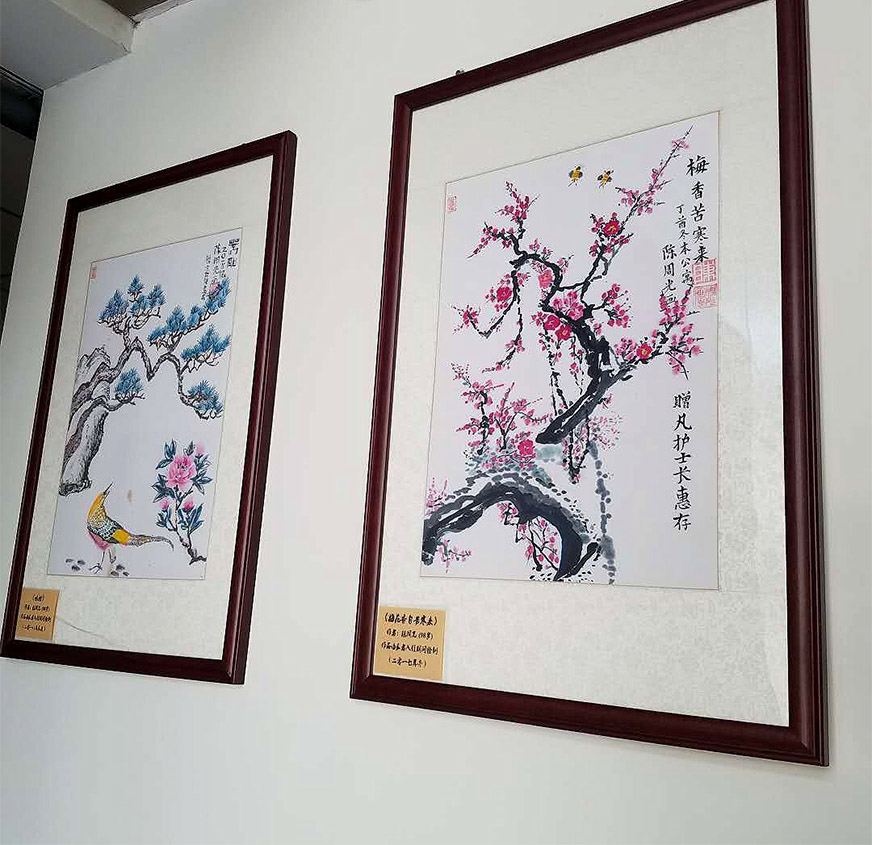每個人都有希望擁有展示自己能力的舞臺,不論是小孩、成年人還是老人。源泉山莊老年公寓的書畫室,翰墨馨香,經(jīng)常有愛好書畫的老人到這里寫寫畫畫。平常有興趣的人會到書畫室欣賞老人的作品,這里也成了前來公寓參觀的人必到之處,他們看了老人書畫作品后不禁豎起大拇指稱贊。書畫文化是我司打造養(yǎng)老文化的重要舉措之一。公司羅錦龍董事長曾多次指出,要將老人的書畫作品上裱掛出,體現(xiàn)我司養(yǎng)老文化氣息。為此,公司多次組織運營部、資產(chǎn)與后勤保障部等相關(guān)人員,挑選一些優(yōu)秀的書畫作品,用精美畫框裱起來,在1樓大廳和7樓、9樓開辟了3個展示欄,讓所有到我們公寓的人,能夠一目了然看到這些美麗書畫。