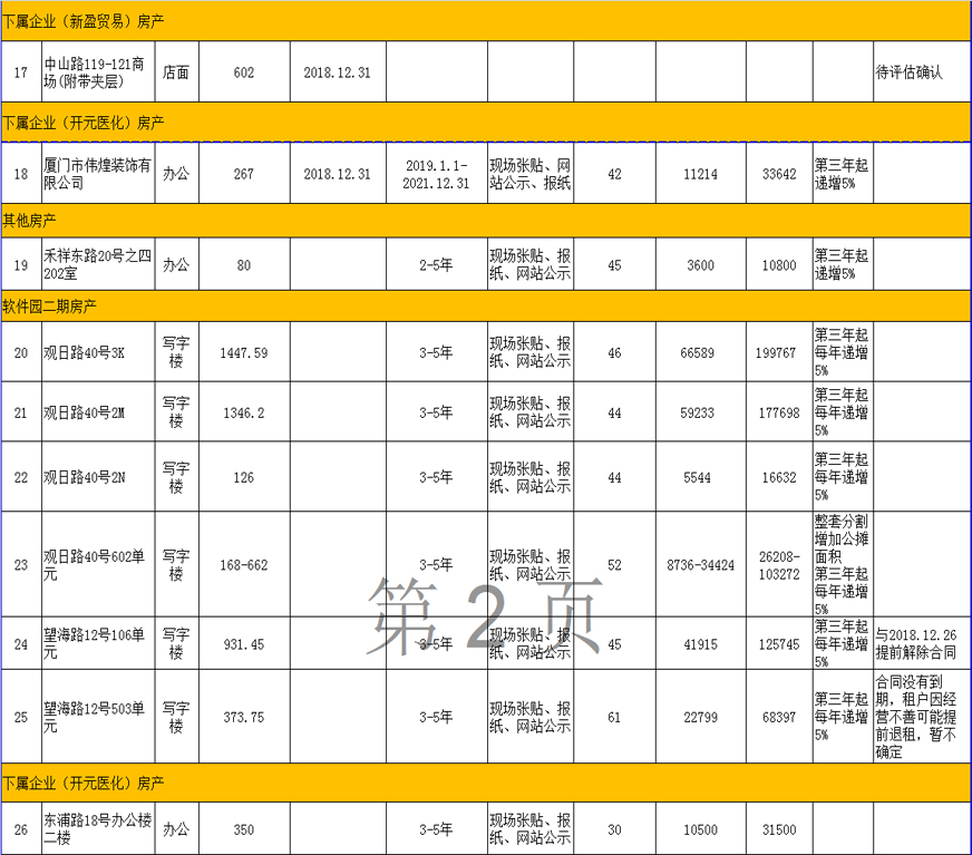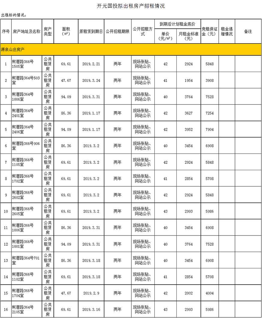 開元國(guó)投2019年1-3月到期、空置房產(chǎn)公開招租