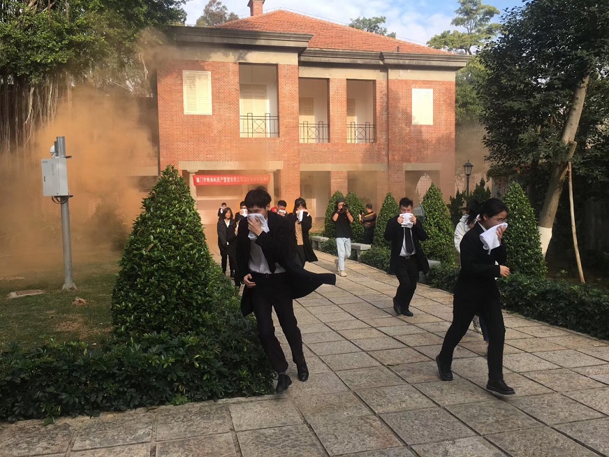 15點00分,演練拉開帷幕。匯豐銀行職員公寓2樓的電氣線路發(fā)生短路,導(dǎo)致起火并引燃附近的裝飾物,其中有一名游客受傷困在火場中。接到火情報告后,總指揮立即下達指令,啟動應(yīng)急救援預(yù)案,各應(yīng)急救援小組迅速集結(jié),在統(tǒng)一指揮下按職責(zé)分工迅速展開救援行動,按要求救出受傷游客,撲滅火災(zāi),并開啟疏散廣播引導(dǎo)全體人員疏散。最終,各應(yīng)急小組通力配合,協(xié)調(diào)有序,火災(zāi)事故得到有效處理,傷員得到成功救治,現(xiàn)場火勢得以撲滅,順利的完成此次應(yīng)急救援工作。15點05分,演練活動結(jié)束。