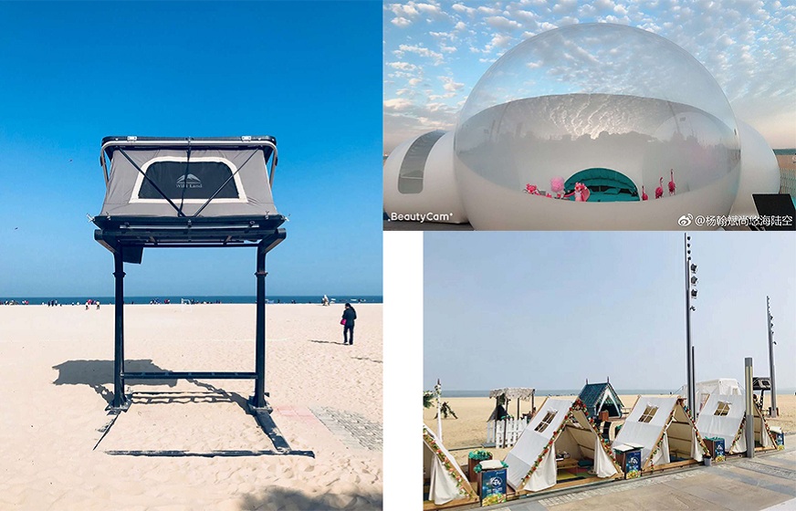 沙灘上浪漫而有趣的泡泡屋及帳篷,極具熱帶風(fēng)情的椰子樹等裝飾,過往行人無不駐足拍照,據(jù)說這是觀音山在抖音上知名的“網(wǎng)紅地”,看似忽然爆紅的背后,它的創(chuàng)始人楊翰斌其實(shí)在觀音山這片“碧海金沙”中已5年有余,獨(dú)到的思維及眼光讓他從一批批不停更迭的商戶中脫穎而出,成了他在得天獨(dú)厚的環(huán)境中生存與“淘金”的制勝法寶。